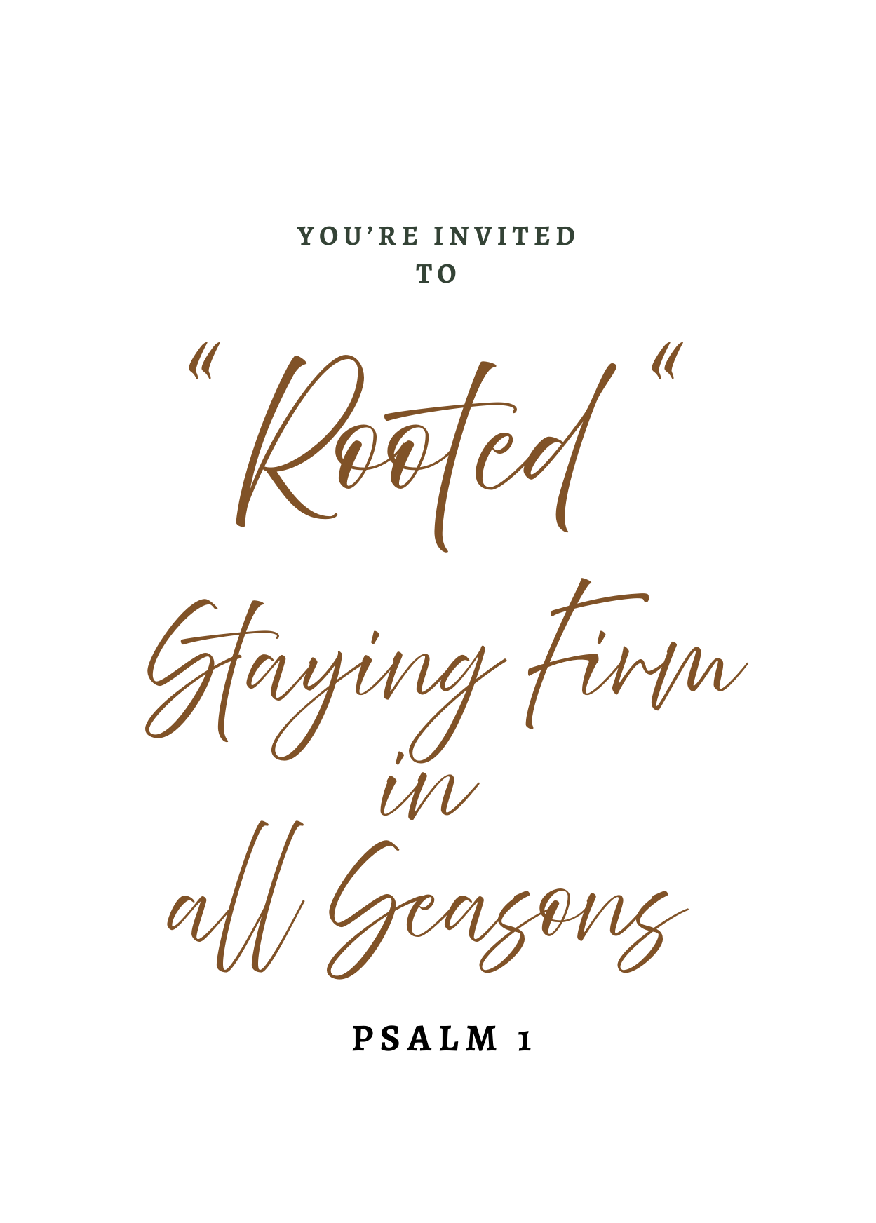 Join us for Rooted-Staying Firm in All Seasons, an event designed to encourage and equip you to remain firmly planted in your identity, faith, relationships and purpose. Together, we'll explore what is means to stand strong, grow deep, and flourish in every season of life.